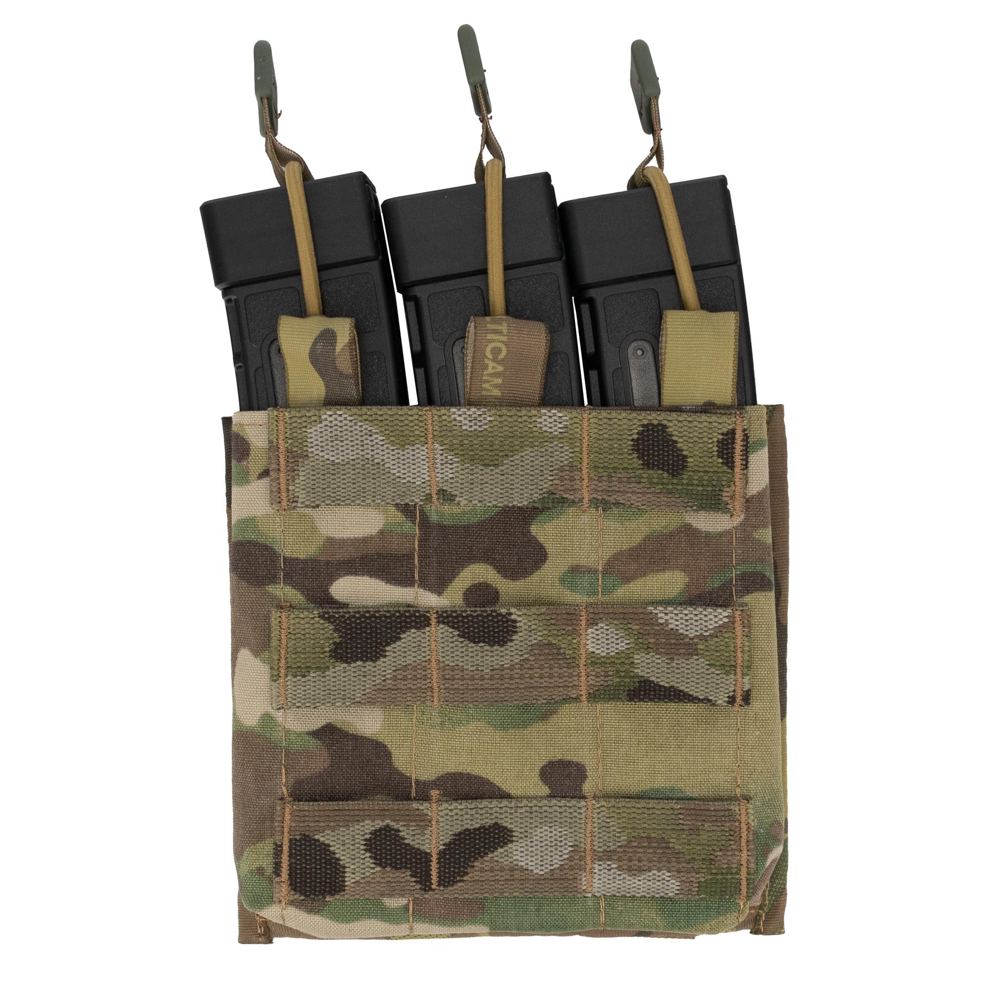 Sumka Q na 3 zásobníky na 30 nábojů pro samopal CZ SCORPION EVO 3. Zásobník je v sumce jištěný kulatou gumou s gumovým úchytem pro snadný úchop i v rukavicích. MOLLE vazba pro upevnění dalších sumek je našita i na čelní straně sumky.